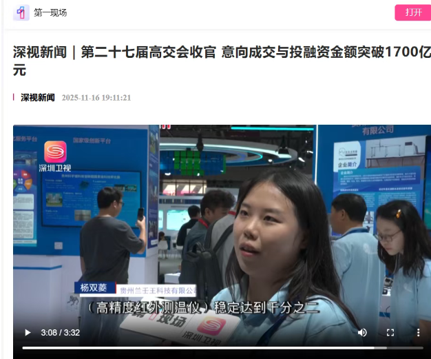 中国国际高新技术成果交易会(高交会)作为中国科技创新的“风向标”,不仅是前沿技术展示的舞台,更是资本与项目对接的黄金平台。在今年的高交会上,贵州兰壬王科技有限公司凭借其高精度红外测温仪,成为焦点之一。该产品以“稳定达到千分之二”的超高精度,吸引了众多投资机构和行业客户的关注,更获得央视《东方时空》栏目的特写报道,展现了硬核科技在产业升级中的核心价值。